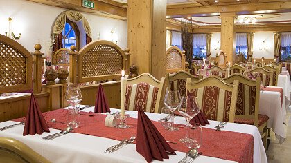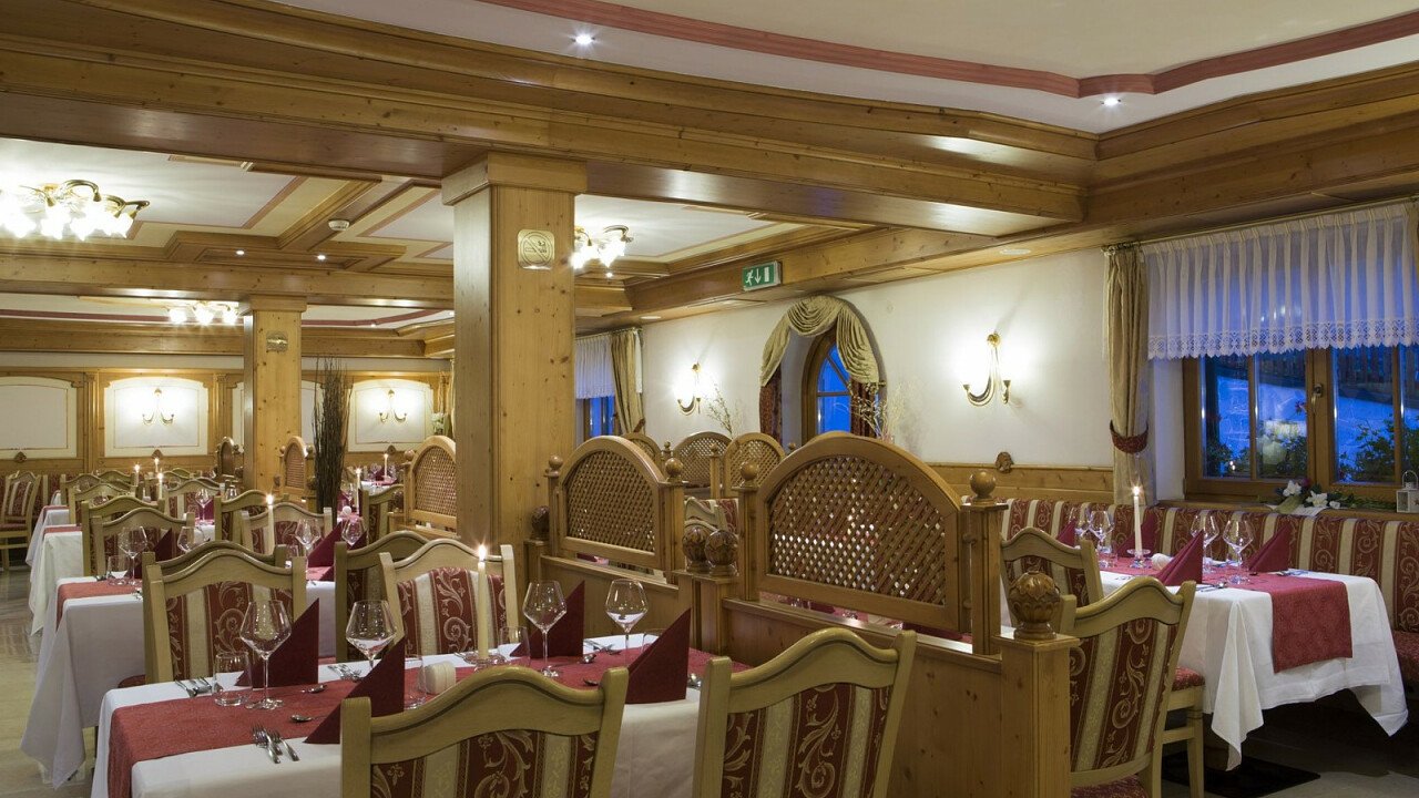 Italienische und internationale Gerichte sowie Spezialitäten aus biologischen Anbau werden im großzügigen Speisesaal mit Buffet oder im Restaurant "Stube Ladina" serviert. Spezielles Kindermenü für die kleinen Gäste und köstliche Cocktails in dem Bar. Typisches Ladines Abendessen einmal pro Woche.
