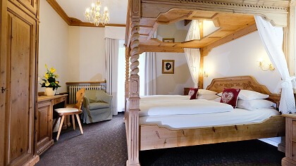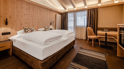 Das Hotel bietet eine warme Gastlichkeit in einem gemütlichen, eleganten Ambiente. Die entspannenden Zimmer und Suiten verfügen über Badezimmer, Föhn, Bademantel, Sat-TV, Telefon, Safe, Minibar und Wi-Fi. Man kann auch in den voll eingerichteten Apartments für bis zu 6 Personen in der Residence wohnen, die direkt auf den Pisten und nur 400 m vom Hotel entfernt liegen.