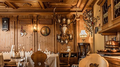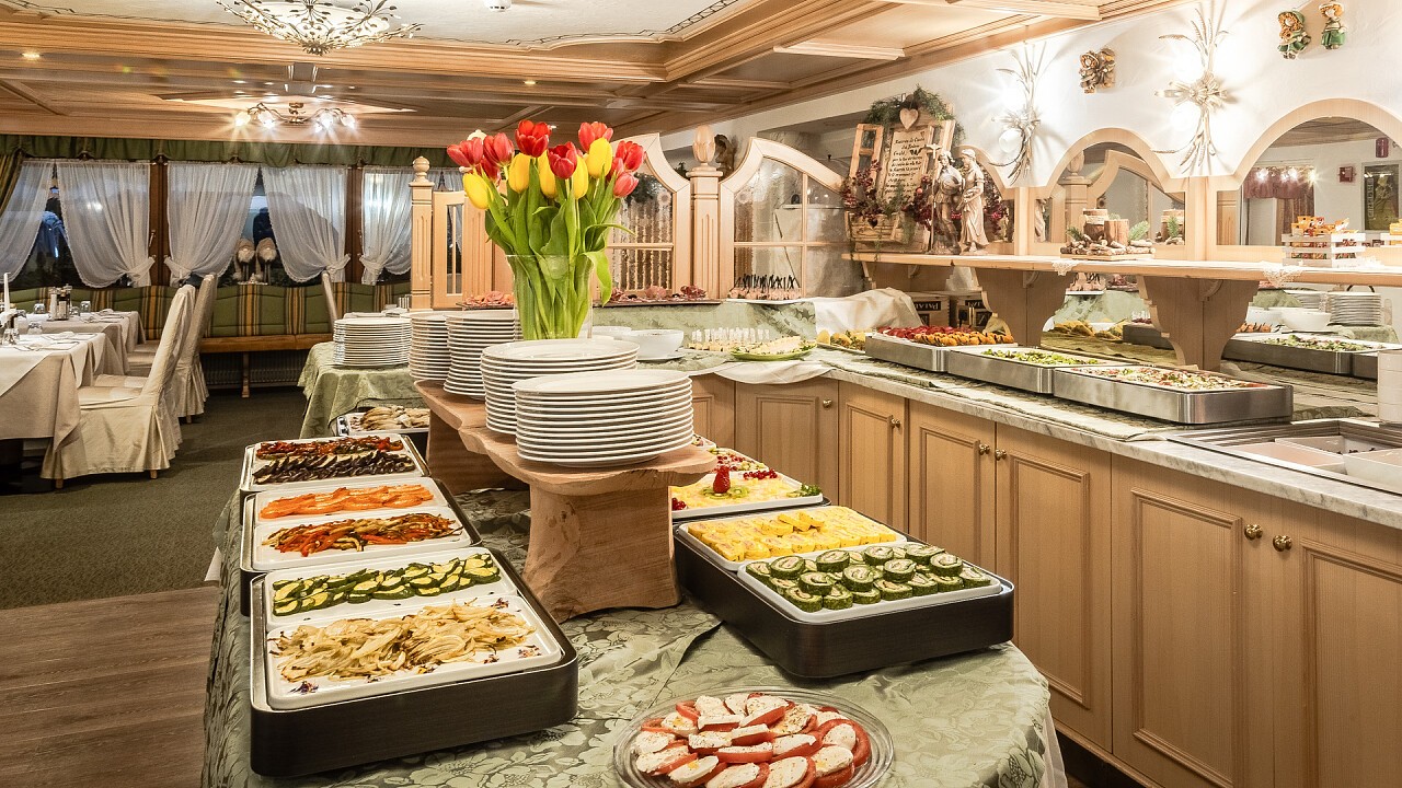 In der schönen Stube und in dem eleganten Speisesaal genießen Sie ein reichhaltiges Frühstücksbuffet und ausgezeichnete lokale und nationale Gerichte, die mit italienischen und ausländischen Spitzenweinen aus dem Weinkeller serviert werden. Im Programm Ladinische Abende.
