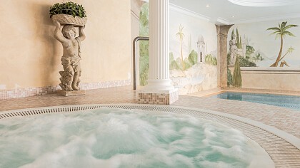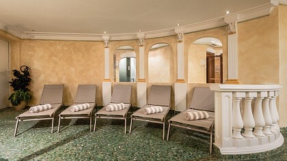 Der einladende Wellnessbereich im römischen Stil ist mit Schwimmbad mit Gegenstromanlage und Whirlpool, Saunaoase mit Dampfbad, Vitarium, Brechlbad, Infrarotkabine und finnischer Sauna, Kneipp-Becken, Aromadusche, Ruhebereich und Fitnessraum ausgestattet. Im Beautybereich werden Behandlungen, klassische und orientale Massagen und Wellnesspakete angeboten.