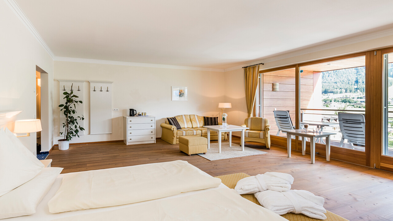 Das Hotel im Pustertal bietet behagliche, helle Zimmer, Suiten und Familienzimmer verschiedener Gröβe (50-88 m²) mit Panoramablick an. Alle Zimmer sind mit Dusche/WC, Radio, Telefon, Safe und vorwiegend mit Balkon ausgestattet.