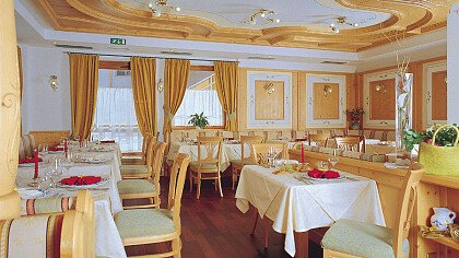 Im gemütlichen Speisesaal werden verlockende italienische Gerichte, typische regionale Spezialitäten und nationale Weinen gekonnt kombiniert.