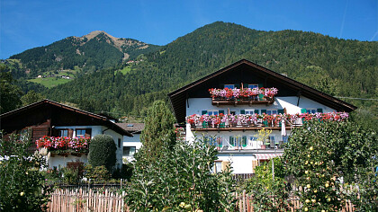 Unser Bauernhaus liegt ausgesprochen ruhig, inmitten von eigenen Obstgärten über dem Dorfzentrum. Gemütlich eingerichtete Ferienwohnungen und geräumige Doppelzimmer mit herrlichem Rundblick auf das Etschtal.