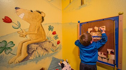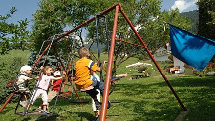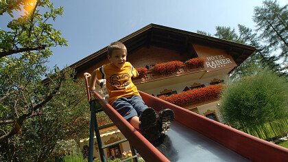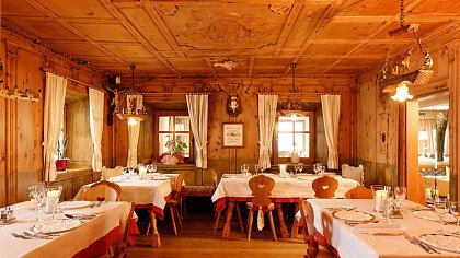 Die Küche serviert internationale Kost, italienische und Südtiroler Spezialitäten. Großzügige Zimmer und getäfelte Stuben, Konferenzraum (mit 50 Plätzen), Terrasse, Liegewiese, Spielsaal und Spielplatz.