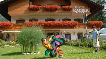Das Hotel & Residence Rainer Eggele befindet sich in ruhiger Lage in Winnebach, nur wenige Autominuten von Innichen entfernt. Im Sommer sind die Naturparks "Sextner Dolomiten" und "Fanes-Sennes-Prags" ein Wanderparadies, während der Drauradweg alle Radfans erwartet. Im Winter genießen Sie die wunderschönen Pisten des Skigebiets Dolomiti Superski.