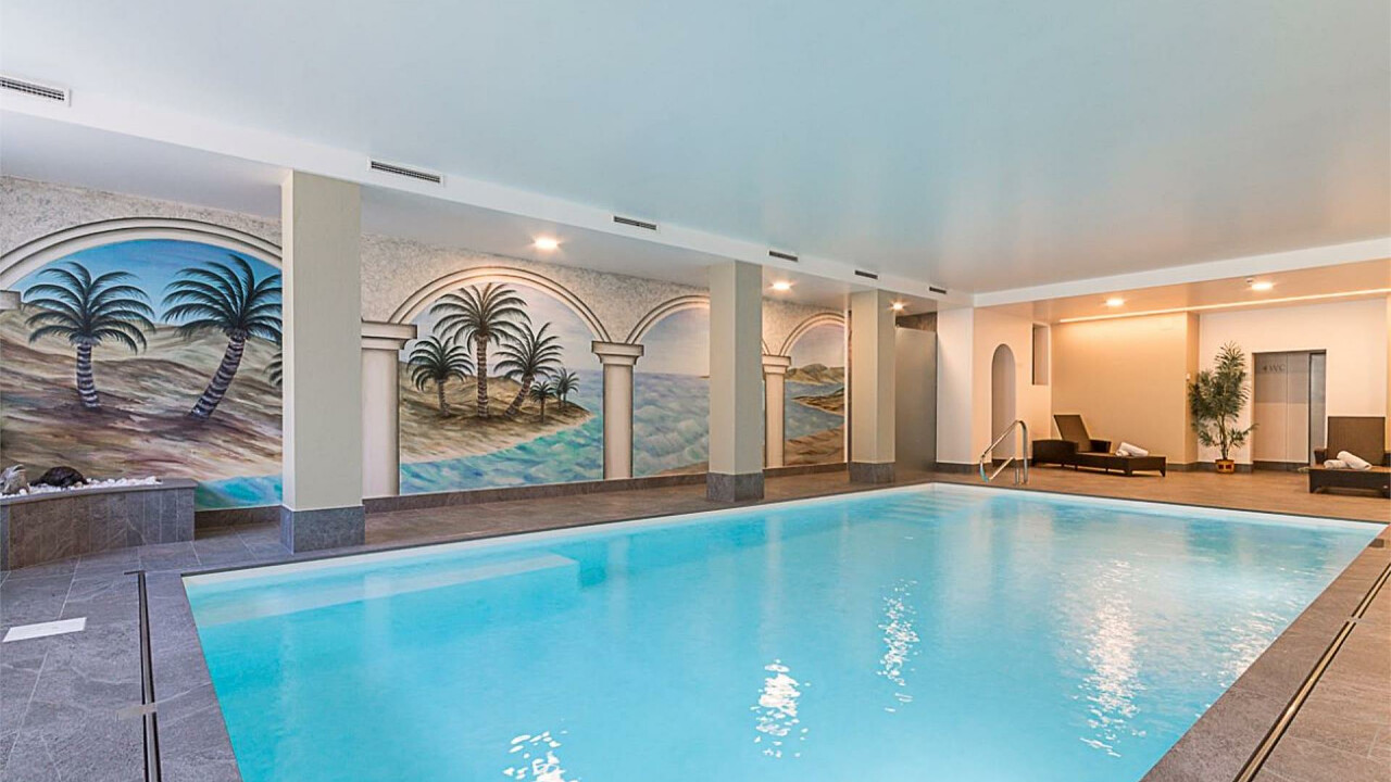 Das beheizte Freibad ( Juni-ende August), Hallenbad, Sauna sind beliebte Treffpunkte um auch im