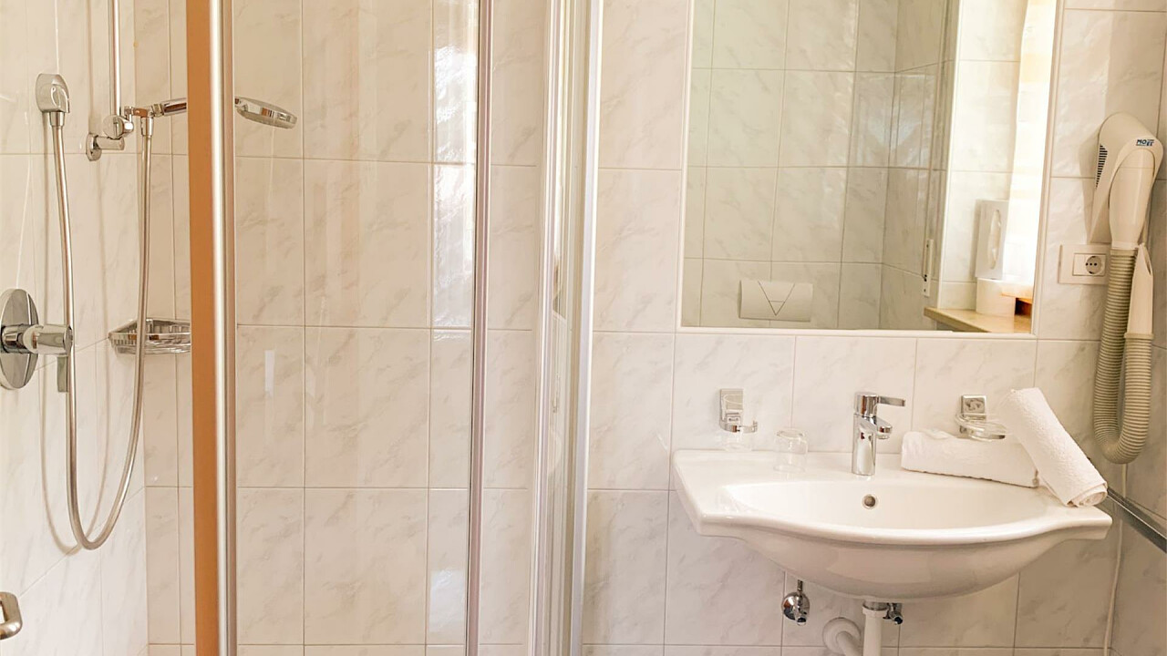 Alle Zimmer sind mit Dusche,WC, Balkon, Telefon, Safe, TV mit Sat-Anschluss und