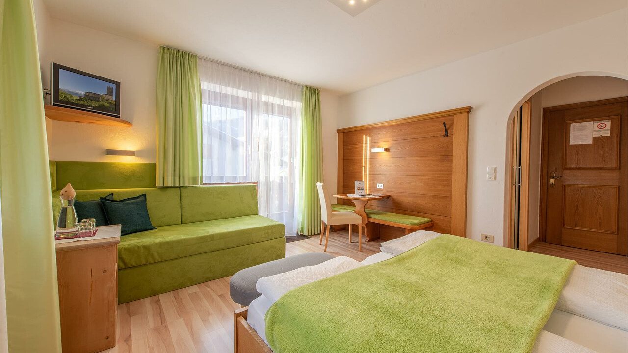 Alle Zimmer/Appartements sind mit neuer Dusche/WC, Haartrockner, Handtuchwärmer und Balkon mit Blick auf Kloster/Fürstenburg, Safe, Flachibild-Sat-TV, Frigo, gemütlicher Couch ausgestattet und mit von der Gastgeberin gemalten Bildern dekoriert. Almrausch Frühstücksbuffet mit frischen regionalen Produkten, Biomüsli- und Joghurtecke, hausgemachten Marmeladen, hausgemachten Süßspeisen, Obst aus eigenem Anbau. Großer sonniger Garten & Liegewiese, Liegestühle, Tischtennis, Tischfußball, Berg-und Schischuhtrockner, freier Eintritt in das Erlebnishallen- und Freibad Mals, freier Eintritt in die Wellness- und Saunalandschaft Mals, Abholdienst vom Bahnhof Mals, kostenloser Bike/Rodel/Schneeschuhverleih im Haus, großer Parkplatz, VinschgauCard von Anfang April bis Ende Oktober.