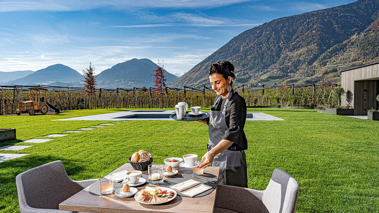 Unser Auhof liegt mitten im Grünen, umgeben von Apfelwiesen, dennoch nur 5 Autominuten vom Zentrum von Meran entfernt. In unseren neuen Zimmern, mit Holz ausgestattet, genießen Sie die Sonne auf der Terrasse und den Ausblick über unsere Liegewiese mit Schwimmbad. Für unsere kleinen Gäste erwartet Sie ein neues Kinderbecken und ein toller Spielplatz. Mit selbstgemachten Marmeladen, frischem Obst, hausgemachtem Saft, Aufschnitt vom Hausmetzger und vielem mehr, starten Sie in jeden neuen Urlaubstag. Wir begrüßen es sehr, wenn Sie bei unseren Hauswanderungen teilnehmen! Freuen Sie sich auf einen Urlaub in familiärer Atmosphäre, bei dem Sie so richtig abschalten können! Wir freuen uns auf Ihr Kommen.