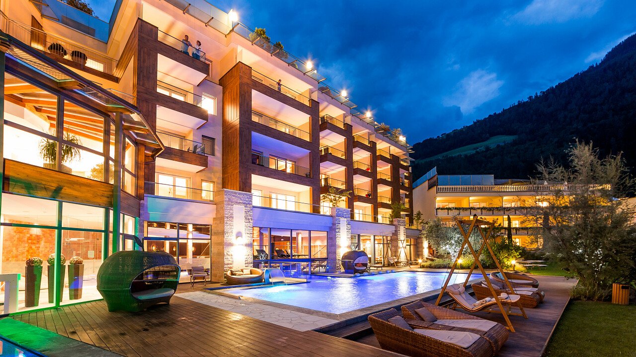 Das Wellness & Spa Resort Quellenhof befindet sich in einer ruhigen Panoramalage in St. Martin in Passeier, nur 10 km von Meran in Südtirol entfernt. Hier, in der Nähe der österreichischen Grenze, kann man wandern im Naturpark Texelgruppe oder entlang des Meraner Höhenweges, Mountainbiketouren unternehmen oder in der hoteleigenen Reithalle reiten, golfen am Golfplatz des Hotels und im Winter Skifahren auf bestens präparierten Pisten.