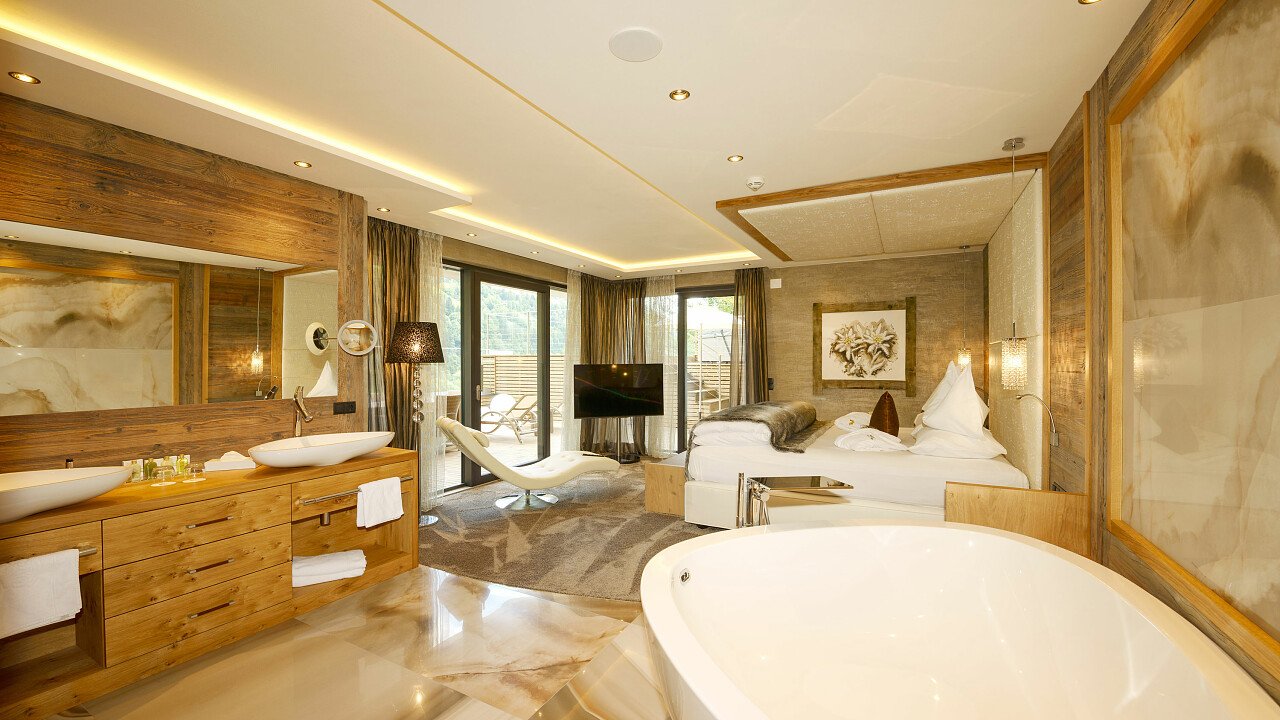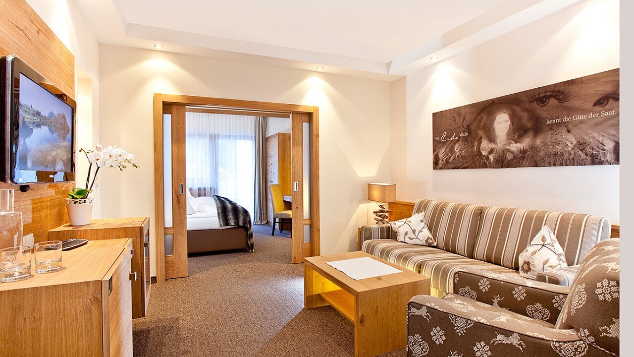 Sie wählen Ihre Unterkunft zwischen Parc & Vital Hotel Quellenhof, Quellenhof, Forellenhof und Alpenschlössel: Das Angebot umfasst verschiedene Zimmer und Suiten, die vor allem für Familien ideal sind, sowie ein Aktiv- und Wellnessprogramm für alle.