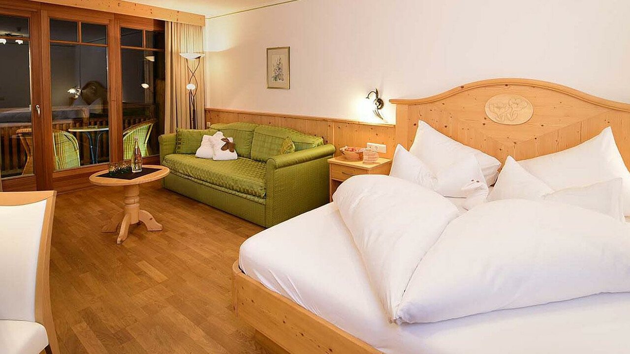 Das Hotel wurde gänzlich renoviert und in hellen und warmen Farbtönen eingerichtet, bietet ein einladendes Ambiente, gemütliche Zimmer und Suiten mit Panoramabalkon, Wi-Fi, Suitepad, Dusche oder Badewanne, WC, Föhn, LCD Sat-TV, Telefon, Safe, Sitzecke und Minibar. Gäste haben auch die Möglichkeit, in einem der beiden Ferienapartments zu wohnen.