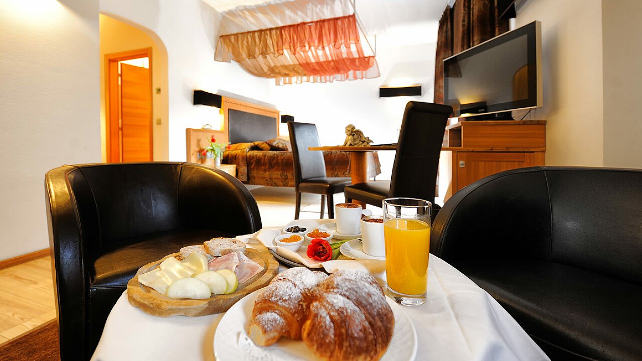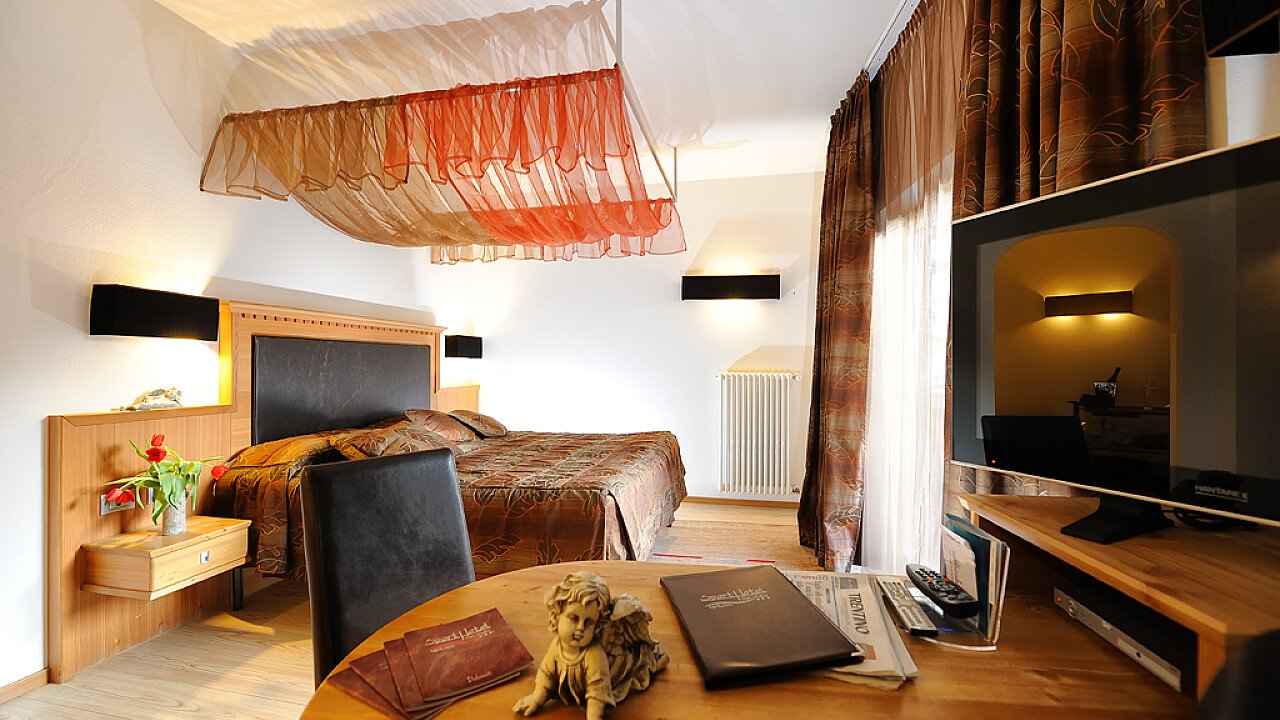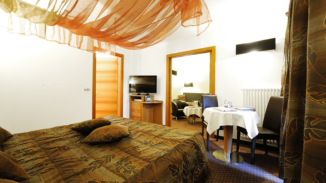 Die gemütlichen Zimmer und Juniorsuiten sind in Holz mit einem modernen Einfluss eingerichtet und gut ausgestattet. Die Junior-Suite mit Himmelbett und Whirlpool ist ideal für Paare, die sich etwas Luxus gönnen wollen.