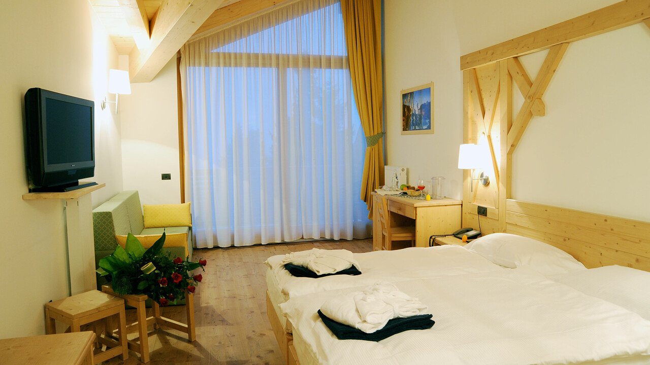 Das neue Hotel bietet ein alpenländisches Ambiente, verfügt über gemütliche, mit Tannenholz eingerichtete Zimmer, mit Teppich- oder Holzböden, Zimmersafe, Bad mit Dusche und Föhn, LCD TV, Etagenheizung und Minibar (auf Anfrage). Manche Zimmer haben eine Holzbalkendecke, einen kleinen Wohnbereich oder Balkon. Beim Familienzimmer sind die Räume miteinander verbunden.