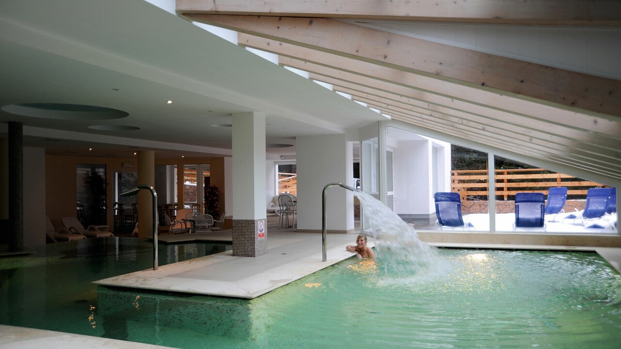 Die Gäste können im Alpine Wellness entspannen, einem weiträumigen Wellness-Zentrum auf 1.000 m² Fläche mit einem Swimming-Pool mit Wasserspielen, einem Grottenbecken, einer finnischen Sauna, einem türkischen Dampfbad, Frigidarium, einem römischen Bad, einem Kneippbecken, einer Erlebnisdusche, einem Entspannungsbereich und Beauty-Center.