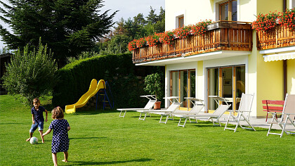 Malerisch in Obstwiesen gebettet, setzt unsere Residence mit einer einzigartigen Kombination aus familiärer Betreuung, Ruhe, Erholung, großzügigen Appartements und mannigfaltigen Freizeitmöglichkeiten neue Akzente für Urlaub mit der ganzen Familie im Dialog mit der unberührten Natur.