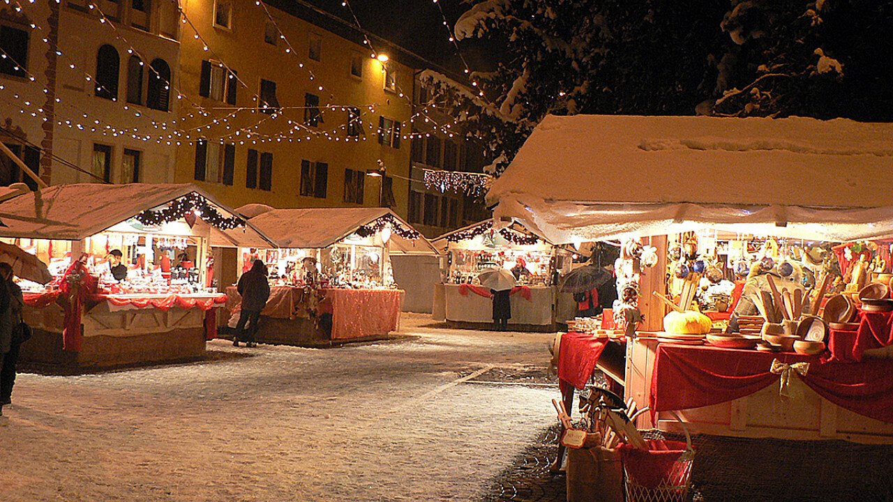 Eine festliche Atmosphäre durchzieht die Straßen von Pergine. In den traditionellen Holzhäuschen bieten die Aussteller ihre besten Waren an, von typischen Produkten über Kunstwerke bis hin zu lokalem Kunsthandwerk. Wenn Sie durch die Straßen gehen und ein leckeres Glas heiße Schokolade oder Glühwein trinken, können Sie auch das perfekte Geschenk finden, eine kleine Aufmerksamkeit für Ihre Lieben. Die perfekte Gelegenheit, dieses schöne Dorf der Valsugana zu erkunden oder wiederzuentdecken, das in der Höhe von seinem Herrenhaus dominiert wird.