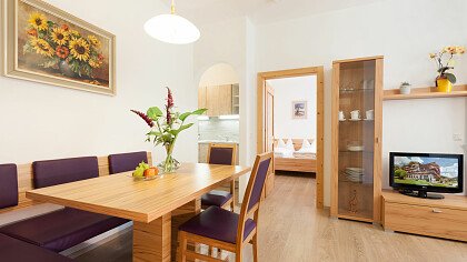 Das Hotel bietet gemütliche und geräumige Appartements, die geschmackvoll und komfortabel eingerichtet sind: gut ausgestattete Kochecke, Telefon, Satellitenfernsehen, Safe, WLAN, Balkon, Terrasse, Bad mit Dusche und Wohnbereich. Auf Nachfrage gibt es gegen Bezahlung auch einen Frühstücksservice.