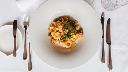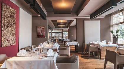 Das Flaggschiff ist das Restaurant, eine echte Ode auf den Geschmack, wo Sie raffinierte Südtiroler Spezialitäten auf der Basis von frischen, saisonalen und hochwertigen Zutaten von lokalen Bauernhöfen probieren können. Auf Anfrage sind auch vegetarische, vegane und glutenfreie Gerichte erhältlich. Sie alle werden von köstlichen regionalen und nationalen Weinen aus dem Weinkeller begleitet, in dem auch der Öffentlichkeit zugängliche Verkostungen organisiert werden. Gönnen Sie sich einen Nachmittagssnack in der Lounge-Bar oder auf der Dachterrasse. Die Säle des Hotels und die Terrasse können auch für besondere Anlässe und Hochzeitsbankette gemietet werden.