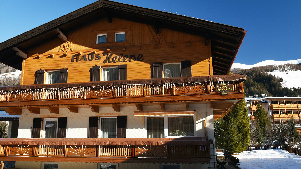 mit eigenem Parkplatz, liegt abseits vom Straßenverkehr und doch zentral zwischen Sexten und Moos, in der schönen und ruhigen Zone »Waldheim«.
