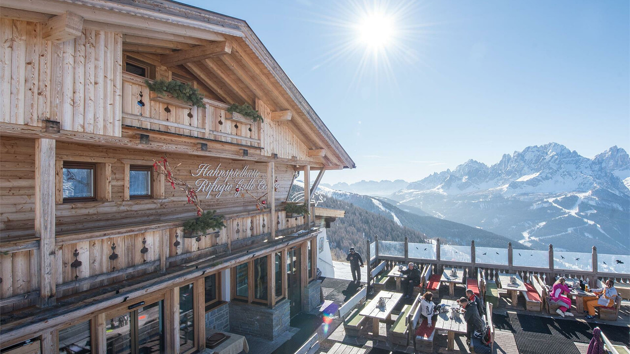 Seit 1959 wird die Hahnspielhütte in Sexten am Helm bewirtet und ist somit die älteste bewirtschaftete Hütte in diesem Gebiet. Nach seinem Vater führt der Gastgeber Karl die Hütte in 2. Generation. Bei einem Besuch erkennt man die Liebe und Leidenschaft die in seiner Arbeit als Hüttenwirt steckt. Die günstige Lage, nur 25 Min Gehzeit von der Bergstation entfernt, die traumhafte Aussicht und das köstliche Essen machen den Reiz der Hahnspielhütte aus. Auf der Sonnenterrasse fühlt sich der Besucher den Bergen so nah, hier ein erfrischendes Getränk und eine stärkende Mahlzeit zu sich nehmen ist ein wahrer Genuss. Die Kinder sind auf dem Spielplatz oberhalb der Hütte Bestens aufgehoben. In den urigen Stuben im Inneren der Hütte finden 70 Leute Platz. Auf sie warten gesellige Stunden und wärmende Speisen. Und weil es so schön ist auf der Hahnspielhütte, vergehen gesellige Stunden hier wie im Flug! Perfekt gelegen, ist die Hütte Ausganspunkt für Wanderungen und Mountainbiketouren im Sommer und Schneespaziergänge im Winter. Zugangsmöglichkeiten zur Hütte hat man von Vierschach, Innichen und Sexten aus. Ein Besuch lohnt sich allemal!