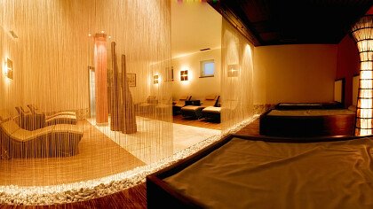 Lassen Sie Ihre Gedanken schweifen und entspannen Sie sich im Wellnesscenter mit Hallenbad, Dampfsauna, Entspannungsbereich, Duschen, Solarium, Fitnessraum, Anwendungen und Massagen. Bräunen Sie sich auf der großen Sonnenterrasse.