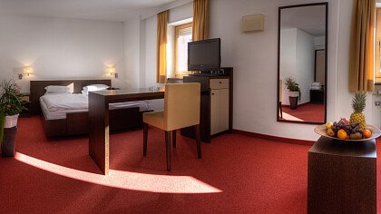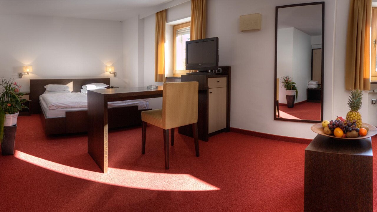 Die gemütlichen Zimmer, Suiten und Juniorsuiten verfügen über Fernseher, Telefon, Bad mit Dusche, Fön und Bademäntel für die Sauna. In unmittelbarer Nähe des Gebäudes befindet sich die Residence Monte Pana, die nur wenige Schritte von den Skipisten entfernt liegt und über geräumige Zweizimmerappartements verfügt, die mit allem Komfort ausgestattet sind.
