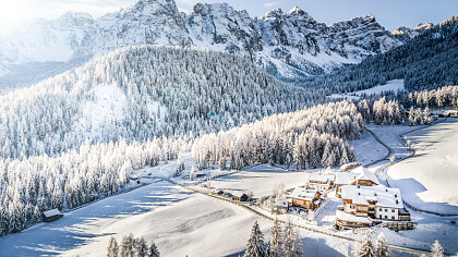 Campill, ein Ortsteil der Gemeinde St. Martin, ist das ideale Ziel für einen Urlaub in engem Kontakt mit der Natur, zwischen Sport und Entspannung. Im Sommer ist es ein Paradies für Wanderer, Mountainbiker und Reiter (eine Reitschule befindet sich 1 km vom Hof entfernt). Im Winter ist es das Reich der Skitourengeher und Schneeschuhwanderer. Für Skifans sind die Pisten des Kronplatzes 6 km vom Hof entfernt. Wer mehr über die ladinische Kultur erfahren möchte, findet in St. Martin im Gadertal das Ladinische Museum, das eine einzigartige Sammlung von Exponaten und Zeugnissen der ladinischen Geschichte beherbergt.
