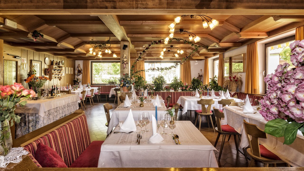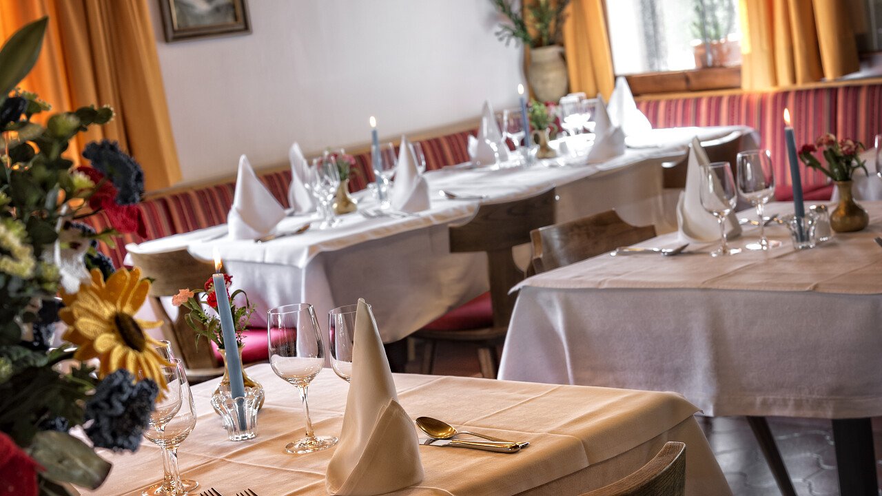 Im Restaurant, das mittags und abends geöffnet ist, werden Sie mit einem reichhaltigen Frühstück und einem hervorragenden Abendessen mit einem großen Salat- und Dessertbuffet verwöhnt. Tiroler Abende, Begrüßungsaperitif und festliches Menü an Festtagen.