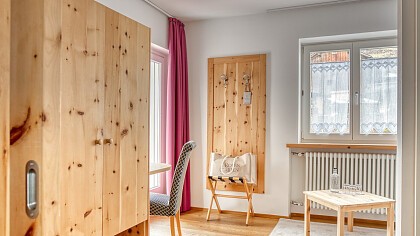 Diese ruhig gelegenen 26 m² großen Zimmer verfügen über Holzboden und die Möbel sind meist in Zirbelholz eingerichtet. D...