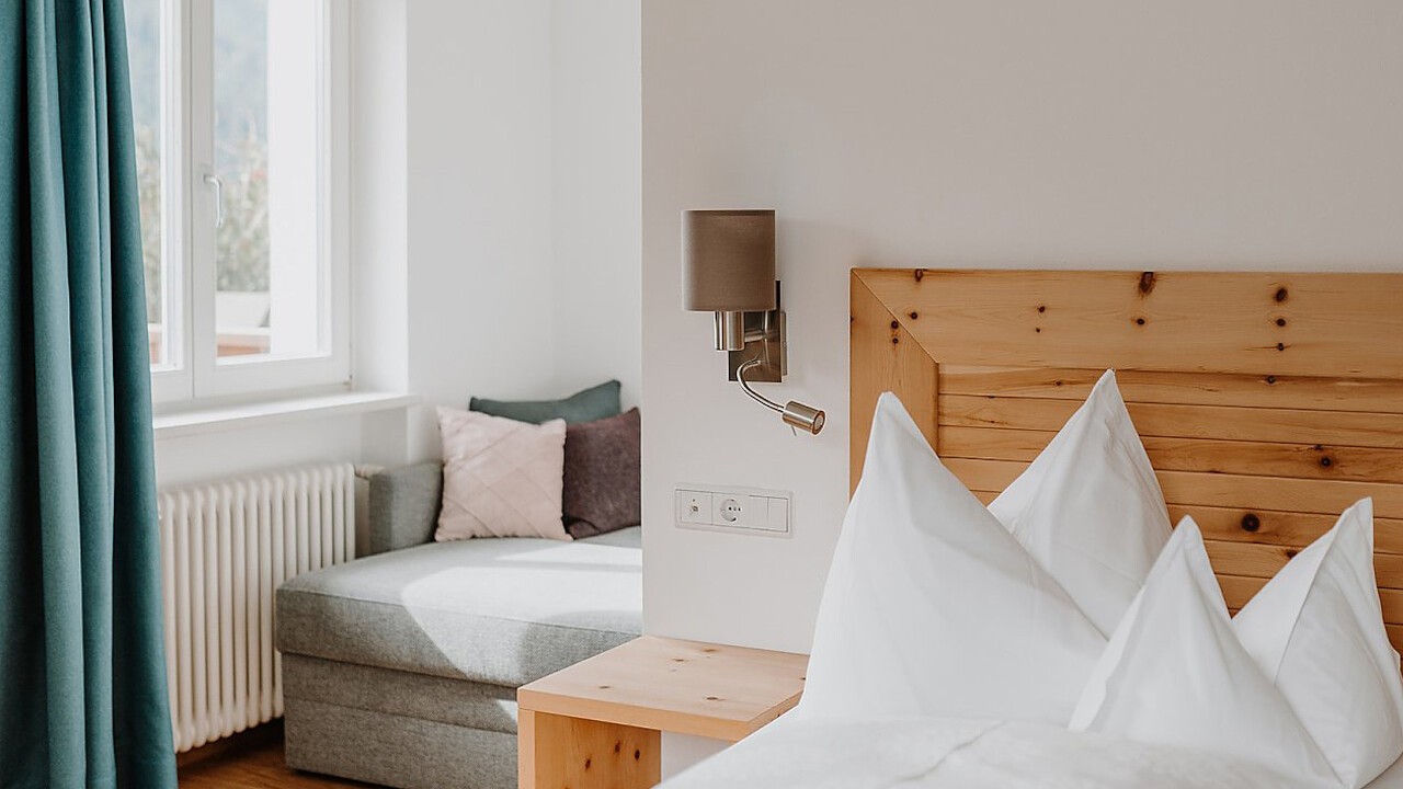Diese Komfortzimmer verfügen über einen Süd- oder Ostbalkon mit traumhaftem Blick über das Tal. Die ruhig gelegenen Zimm...
