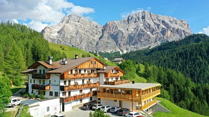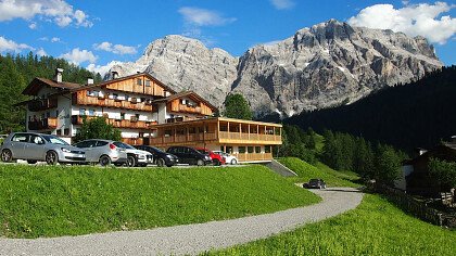 Das Angebot reicht von den flachen Armentara Wiesen bis zu den beeindruckenden Gipfeln Heiligkreuzkofel oder Neuner Spitze. Im Sommer eignet sich das Gebiet auch perfekt für Motorrad - und Radtouren auf den berühmten Dolomitenpässen. Der Charme der verschneiten Landschaft ermuntert zum Skifahren, Langlaufen, Schitouren, Schneeschuhwandern und Rodeln. Die Pisten sind leicht mit dem Skibus erreichbar, welches in 3 Minuten Entfernung vom Hotel hält.