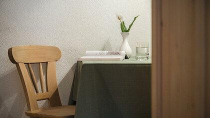 In den romantischen Stuben werden reichhaltige Frühstücke und leckere Abendessen mit ladinischen Spezialitäten und hervorragenden südtiroler Weinen angeboten. Die Gerichte werden mit Liebe und frischen Zutaten aus dem hauseigenen Garten zubereitet.