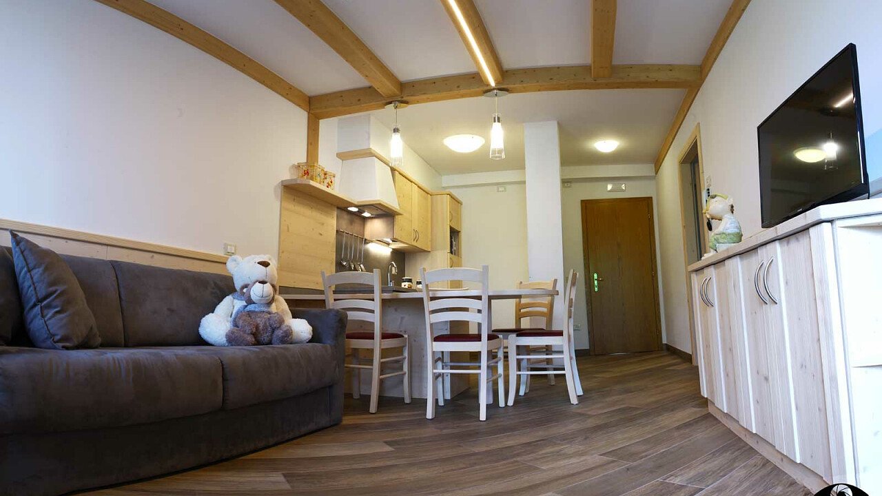 Moreover: free common laundrette, vacuum cleaner, outdoor private car park, barbecue, bikes rental, heated ski and boot depot, children's playground. The guests can get the Andalo Card to obtain reductions in the sport centres and animation activities. Pets are admitted in demand. Eco-friendly structure with solar panels and photovoltaic panels (electricity from renewable sources, separate collection).