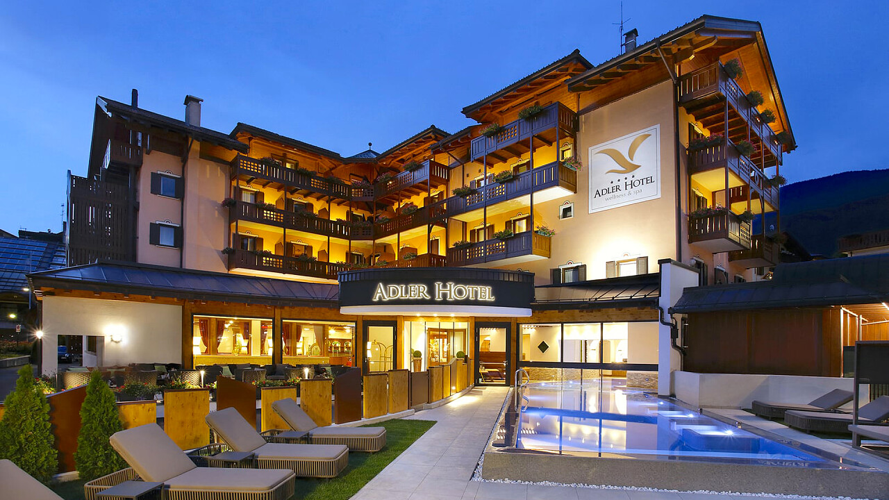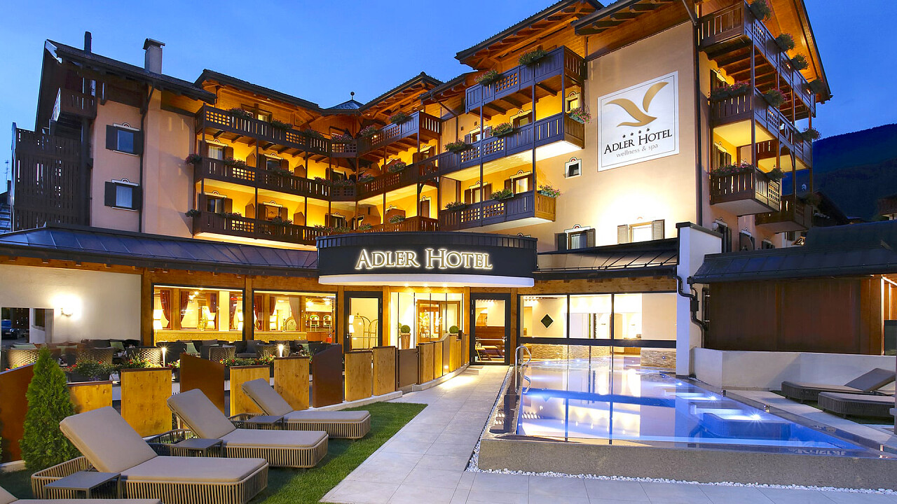 The 4-star hotel of the Bottamedi family, Adler Hotel Wellness & Spa is located only a few metres from the ski lifts of the Paganella ski area in Andalo, Trentino. Thanks to its strategic location, it boasts a panoramic view of the Brenta Dolomites.