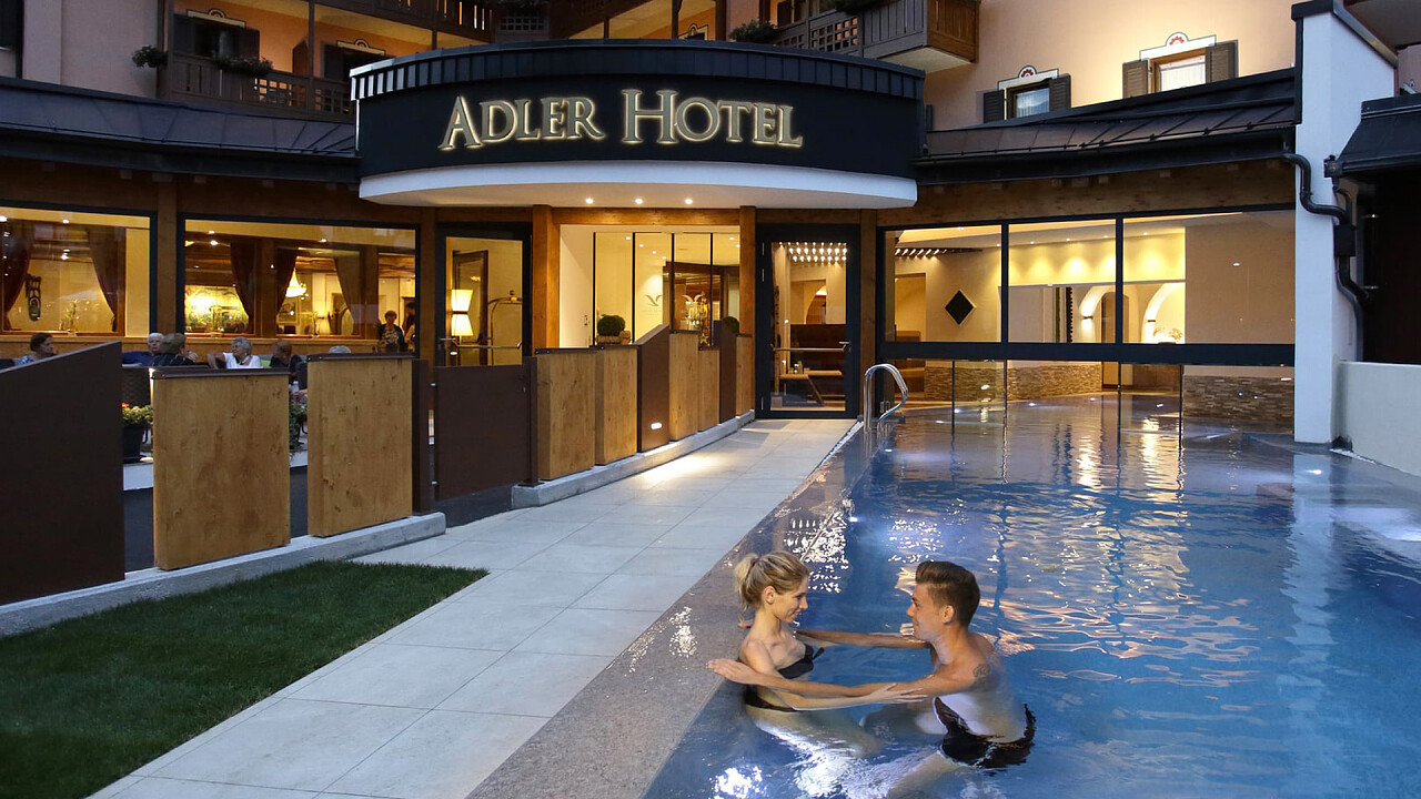 The wellness department of the Adler Wellness & Spa is well stocked, in fact, in its indoor areas you can enjoy the Dolomiti Vital Pool, a Wellness Centre, a Day Spa and many massages and treatments. In the wellness area - entry is permitted from 14 years of age - you will find a Turkish bath, Roman bath, Kneipp path, relaxation rooms, whirlpools and various types of saunas.