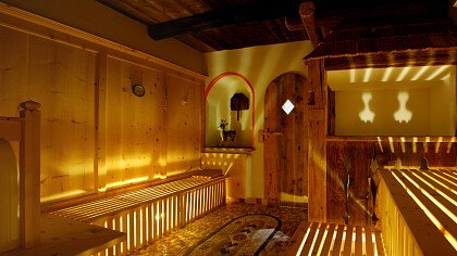 Relax in the 450 mq- wide wellness centre with Finnish sauna, bio sauna "Stua ladina", steam bath, emotional Jacuzzi, cold therapy showers, ice cave, relax room with heated water beds and herbal tea area. Moreover, the new and scenographic panoramic pool of 16 meters for 5 with hydro-massage longhairs, an effervescence platform and a cervical massage corner.