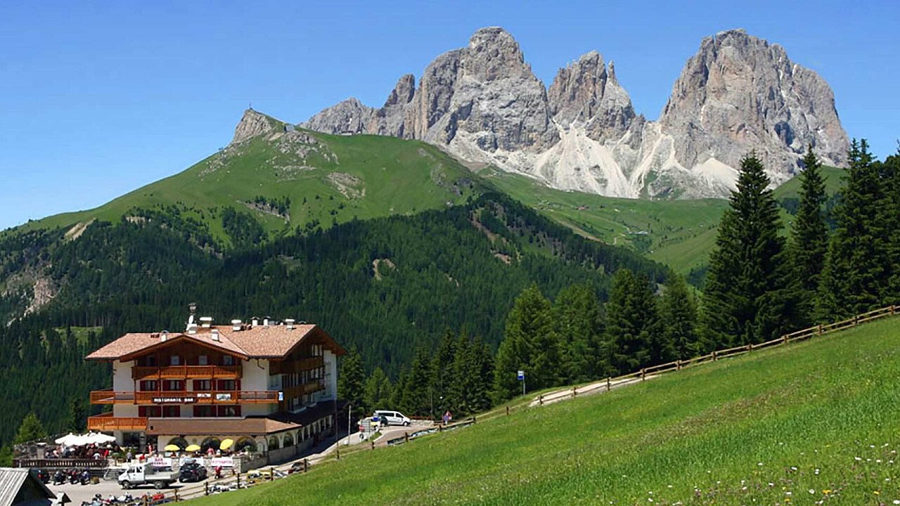 Hotel Bellavista is situated in Canazei, heart of the upper Val di Fassa valley and renowned tourist resort at the feet of some of the most imposing peaks of the Dolomites. Its panoramic position boasts an enchanting view of the Catinaccio, the summits of Sassolungo and the Sella and Pordoi Towers.