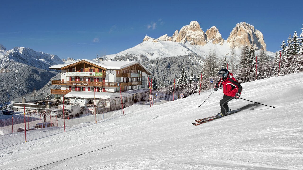 In winter the area becomes the reign of winter sports, in summer it is the paradise for hikers, climbers and bikers. The hotel, only 20 meters from the Belvedere ski area, is close to the mountain bike downhill trail, in summer, and to the Sellaronda ski tour and the only snowboard park of the area, in winter.