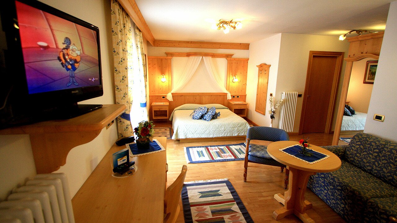 Smart and provided with a unique atmosphere, this elegant hotel in Val di Fassa stands out for its exquisite hospitality. The bedrooms and the Junior Suites, some with a private sitting room, are equipped with bathroom, telephone, satellite TV, hairdryer, safe and balcony. Some rooms are comunicating for family.