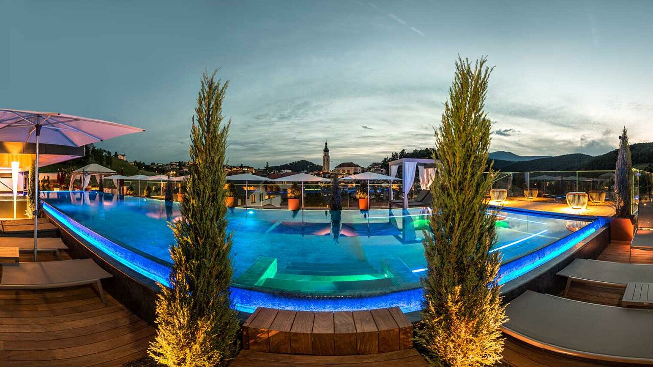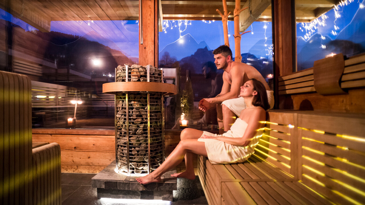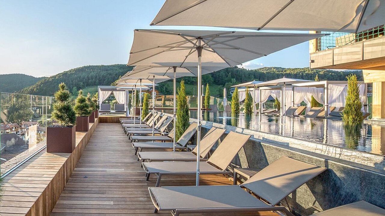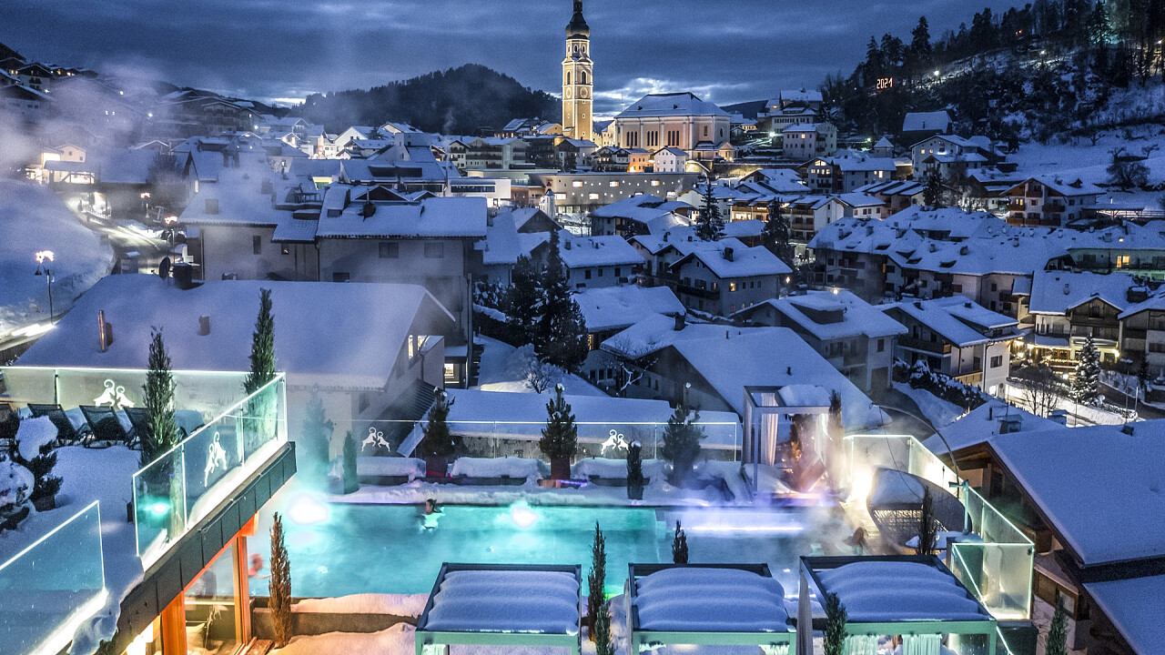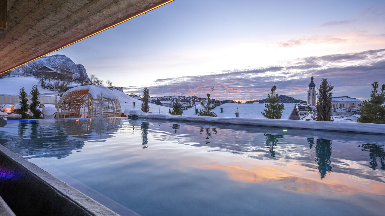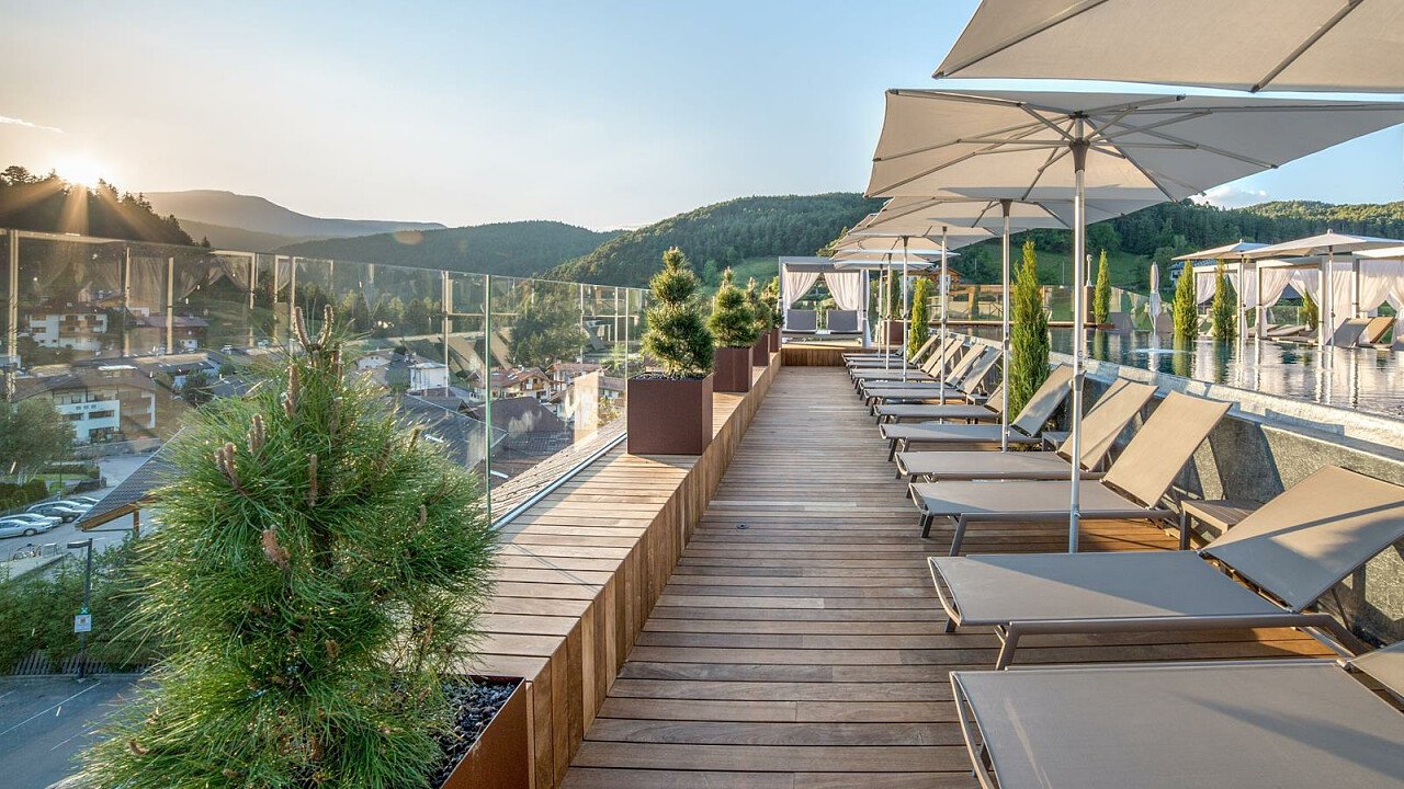 The wellness area comprises: indoor heated pool with salt water chlorination, whirlpool beds and waterfalls; whirlpool on the roof terrace, open both in summer and in winter; panoramic Finnish sauna on the roof terrace with view on the Sciliar; beauty salon for treatments, massages and wraps for body and face.