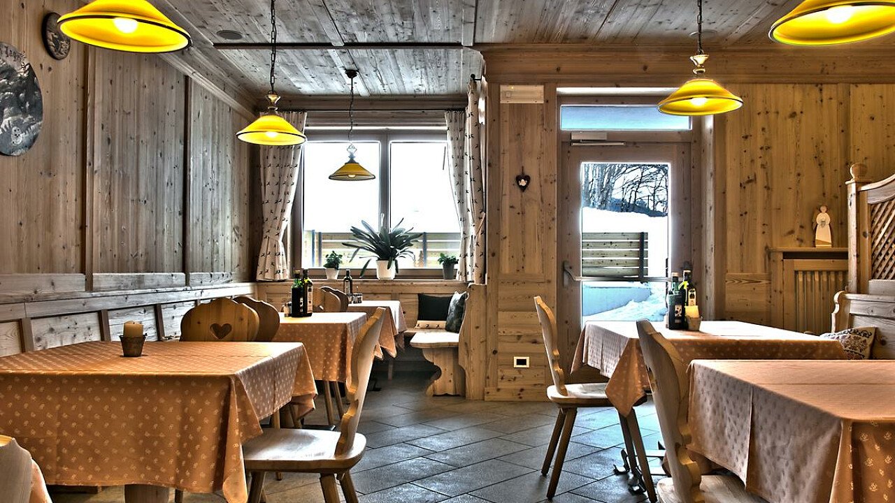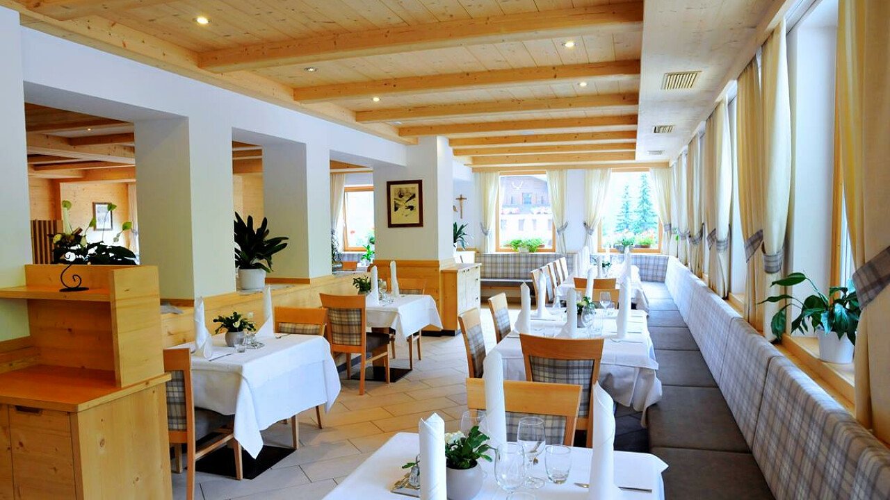 The restaurant offers an excellent local cuisine with Ladin and international specialties, breakfast buffet, à la carte menu at dinner and varied salads buffet. On demand, special menus for vegetarians and for guests suffering from coeliac disease.