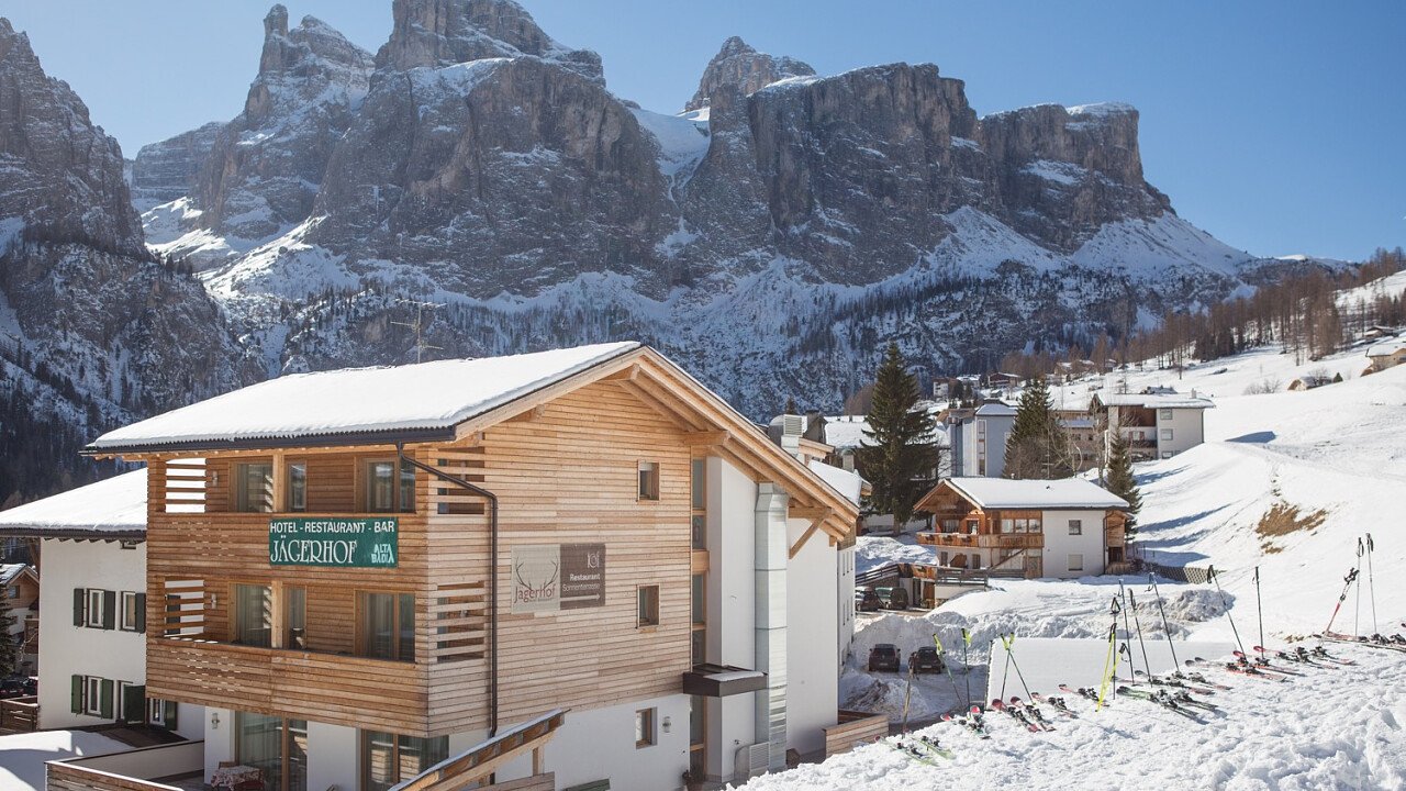 Hotel Jägerhof is situated in Colfosco, near Corvara, in the heart of Alta Badia. The village is a favorite tourist destination and is perfect for active holidays: in summer you can practice golf, trekking and mountain biking in the nature reserve Parco Naturale Puez-Odle, in winter you can practice skiing and other winter sports in the ski domain Dolomiti Superski.