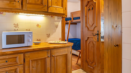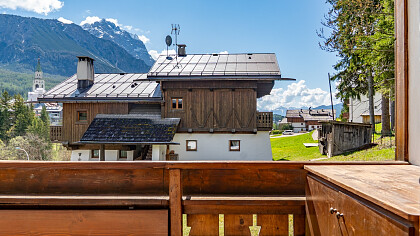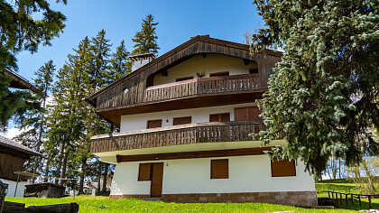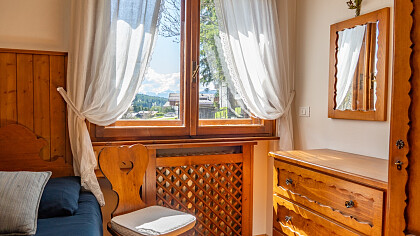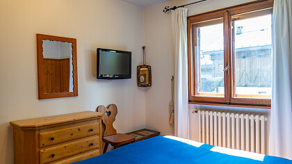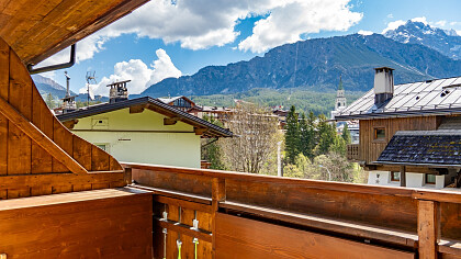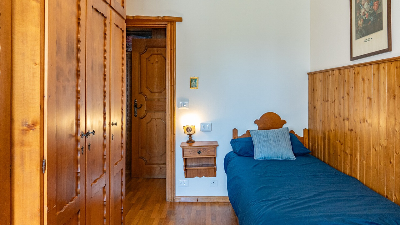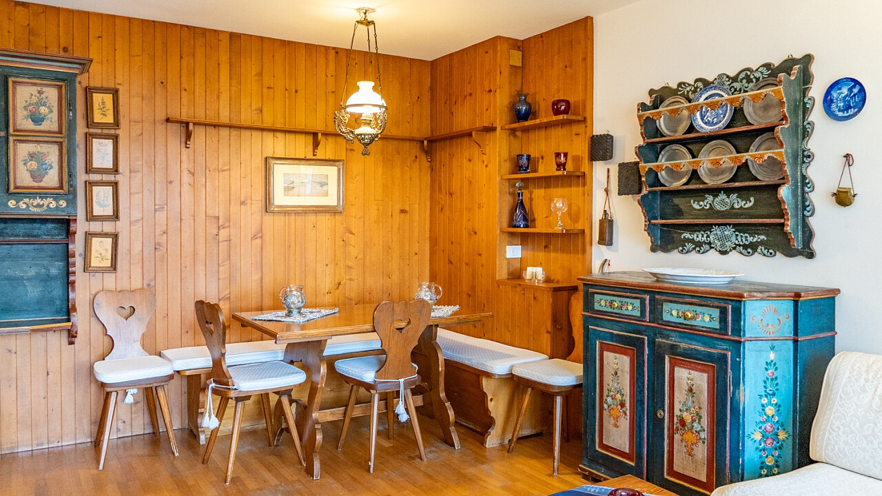 The chalet comfortably accommodates up to six guests, featuring three inviting bedrooms and two refined bathrooms. Among its amenities, guests will enjoy free Wi-Fi connection and private covered parking, ensuring a peaceful and convenient stay. Its location is ideal: less than ten minutes on foot from Corso Italia, close to the Ice Stadium and the iconic “Eugenio Monti” Olympic track, with ski lifts just five minutes away by car.