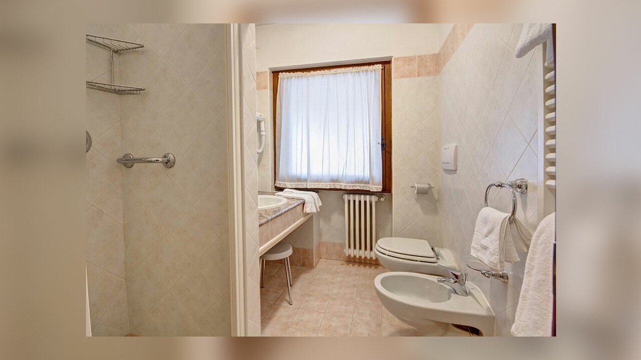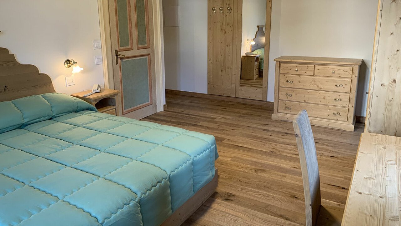 The hotel has 52 rooms decorated in mountain style. These are located both in the main building and in the annex. All rooms have a private bathroom, courtesy set and hairdryer, laundry service, room service, satellite TV, free Wi-Fi, a safe, and views of the Dolomites.