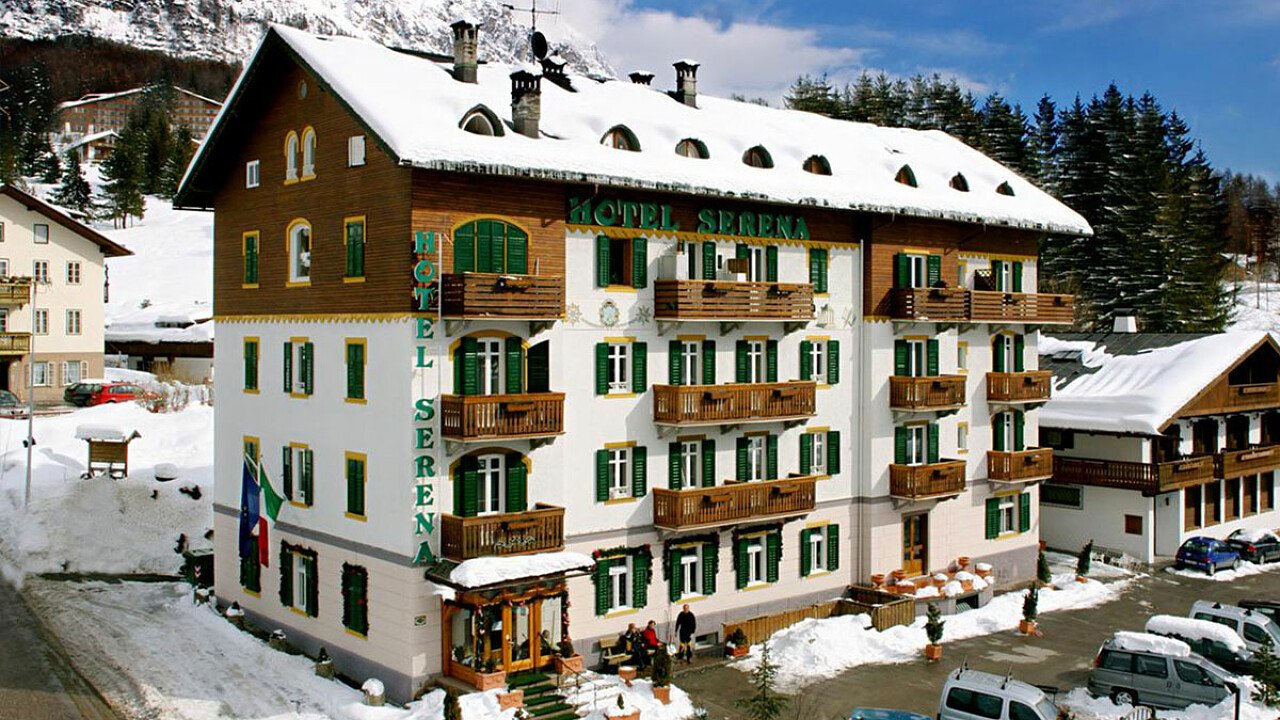 The 3-star Serena Hotel in Cortina d'Ampezzo is an historic hotel that dates back to the early 1900s. It is located away from traffic at the entrance of the village and offers a beautiful view of all the peaks of the UNESCO Dolomites of Conca Ampezzana. The historic centre is a few minutes' walk from the hotel: there are luxury shops, bars and restaurants with typical products of the Ampezzo cuisine and souvenir shops.