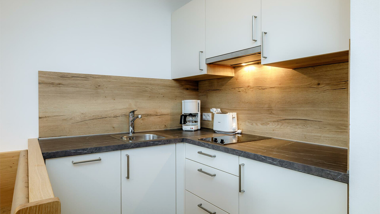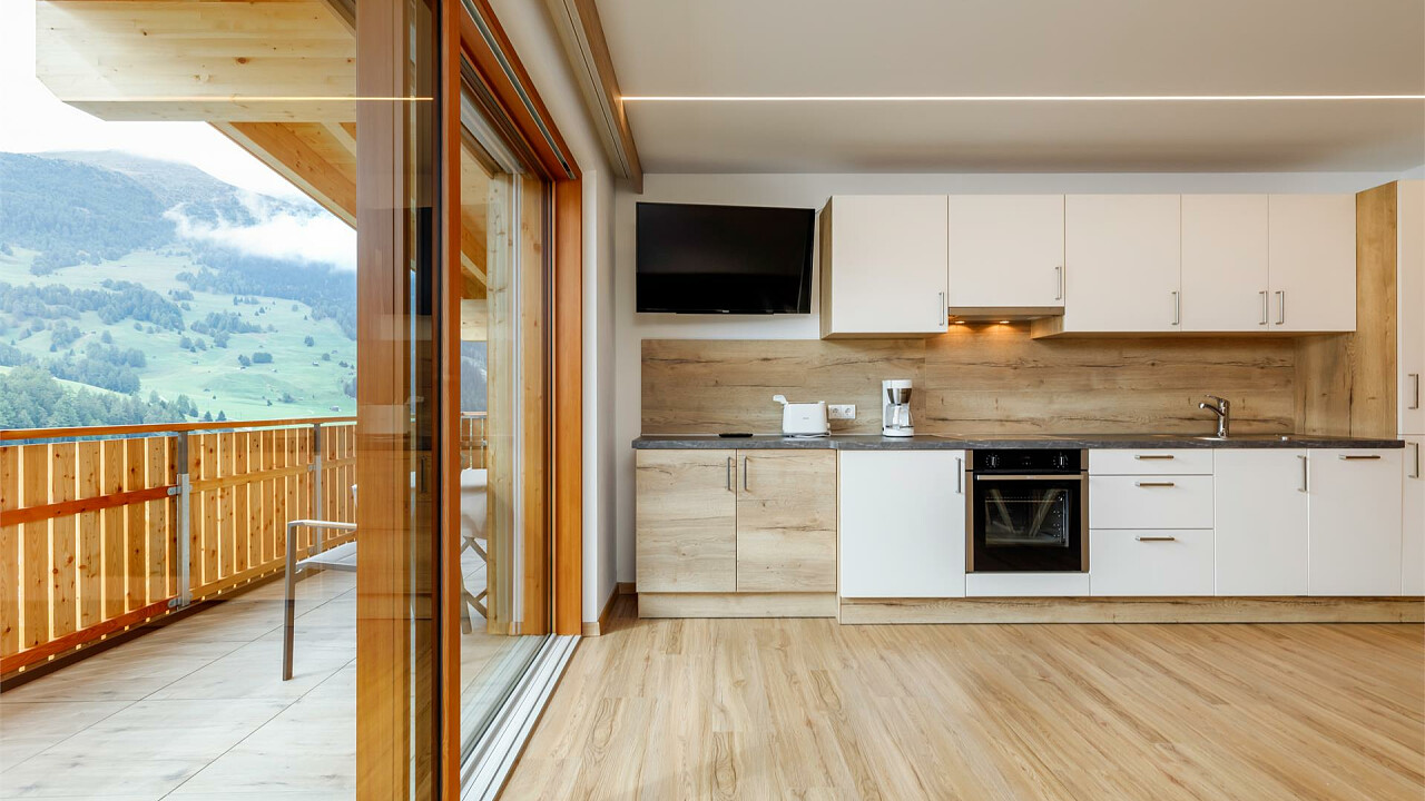 Since the last summer in the house Heidi our quests have been able to choose between five apartments: the newly built type "Lake View" and the apartments rebuilt furnished in a modern and stylish waywhile, with a living room and a kitchenette, one or two bedrooms, a bathroom and a balcony with a fantastic view of the Reschen Lake and the srrounding mountains with Ortler view.
