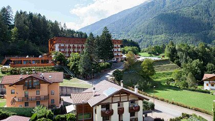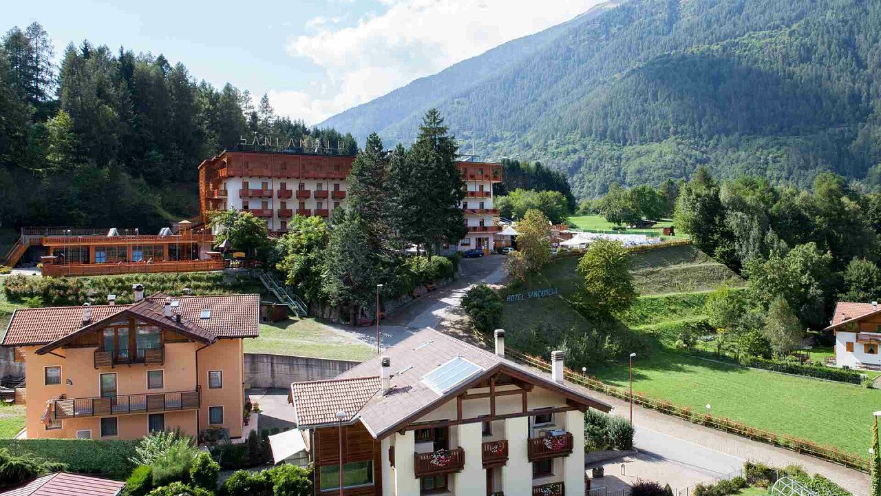 The Hotel San Camillo in Dimaro-Folgarida enjoys a unique panorama of the Val di Sole, only 2 kilometers from the Daolasa Cable Car, and is perfect for a vacation in the snow among ski slopes and snowy landscapes. Surrounded by the Stelvio and Adamello-Brenta parks, it offers numerous trekking, hiking, and biking trails. Along the River Noce you can partake in rafting, canoeing, and kayaking.