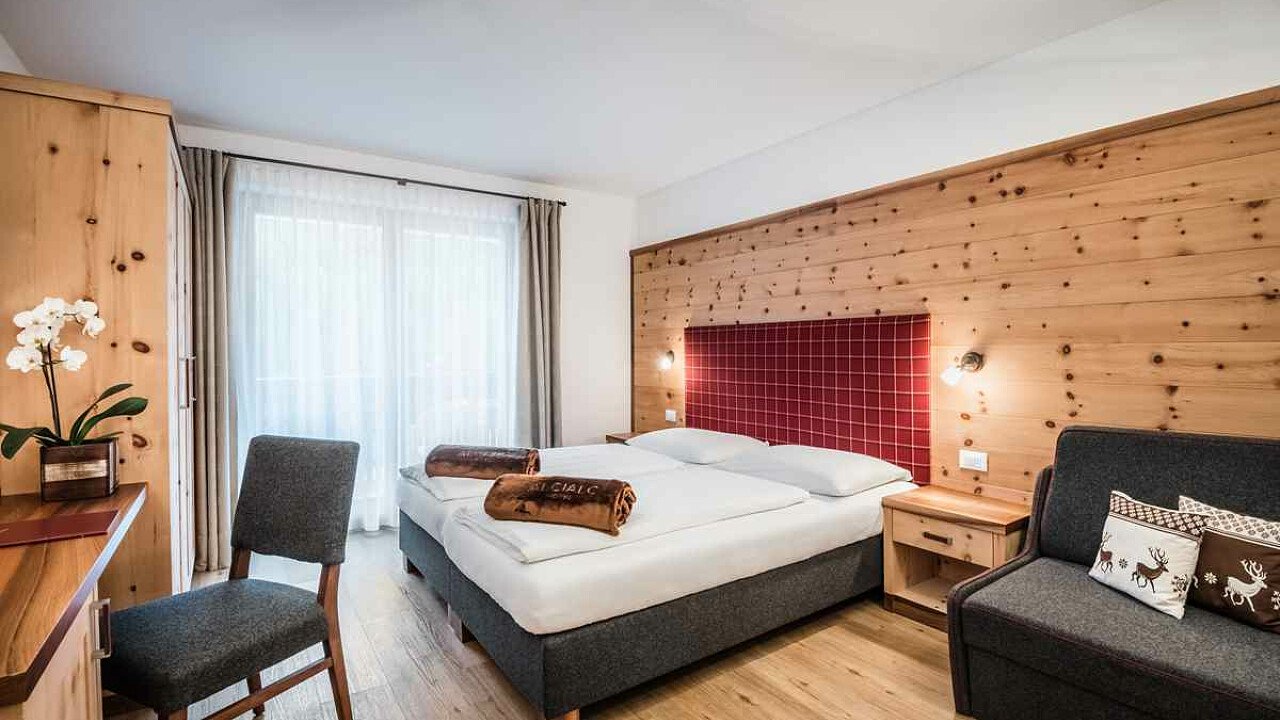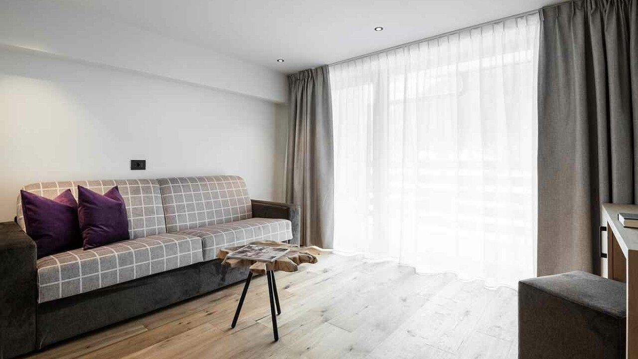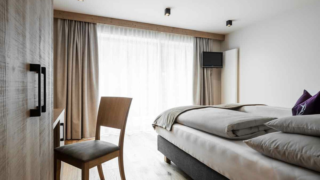 The comfortable rooms and suites furnished in alpine style with design furniture in natural materials have a bathroom with shower, TV, Wi-Fi, safe, hairdryer, telephone, and some have a balcony.