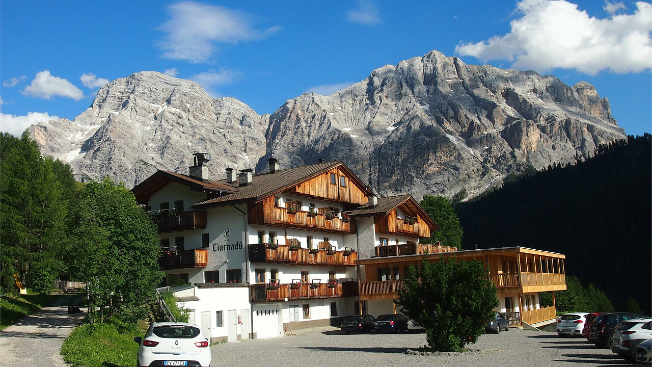 The alpine Hotel Ciurnadù lies at 1550 m in the sunny slope above the village of La Val submerged in the green of meadows and forests, set at the feet of the majestic Sasso Croce and Rit. Here traffic, noise and stress are far memories and life flows placid scanned by rhythm, sound, fragrance and colour of nature. The Rubatscher family takes care of the farm and looks forward to show you the ladin culture and hospitality in order to render your holiday an oasis of rest capable of strengthening body and soul.
